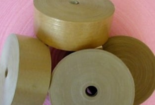 De tape kleeft zodra de lijm in contact komt met water. Deze tape is in verschillende soorten verkrijgbaar: in wit of bruin, neutraal 2 of 3 draads versterkt lopend in de lengte van de tape. In ruitmotief is de tape extra sterk door de glasvezelversterking.